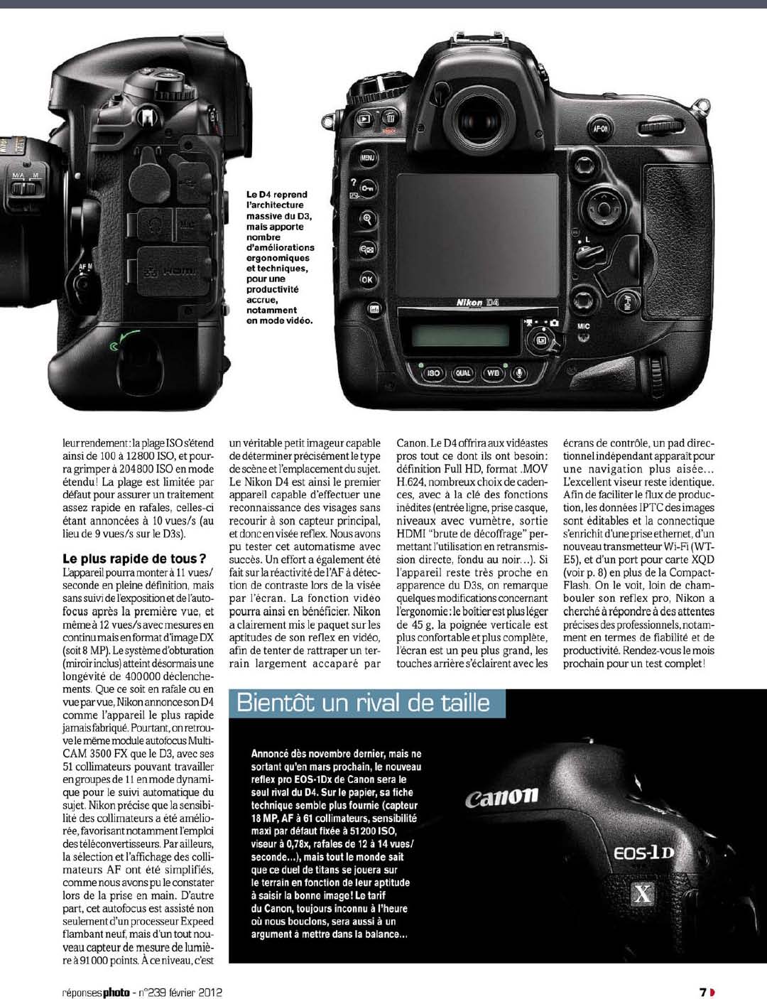 โดยภาพดังกล่าวนั้นปรากฏอยู่ในหน้านิตยสารเล่มหนึ่งของของฝรั่งเศสชื่อว่า Responses Photo พร้อมกับการเผยโฉมด้านข้างชนิดชัดที่สุดที่ทีมงาน TechXcite เคยเห็นมาเลยทีเดียว ส่วนข่าวที่ไม่ค่อยดีนักคือสเป็คบางอย่างนั้นดูจะน้อยกว่า Canon คู่แข่งอย่าง EOS 1DX เช่น